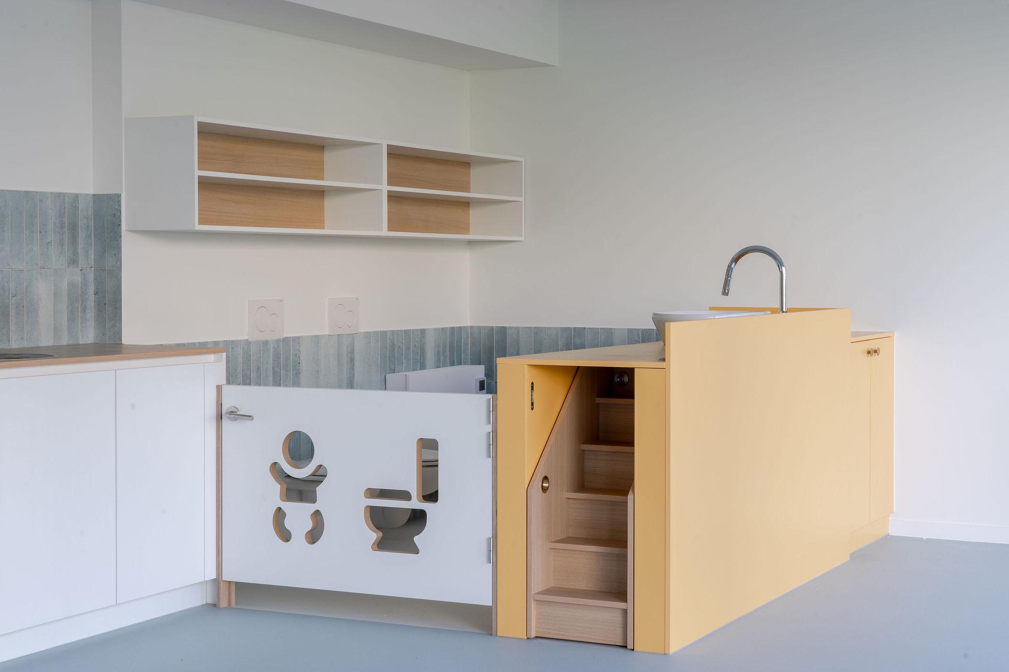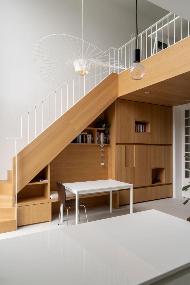 inrichting mezzanine met bureauhoek en ontbijtplek